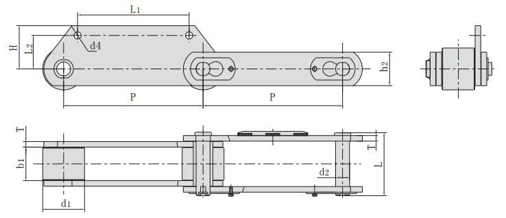 P500F4,帶附板輸送鏈,工程鏈條,鏈條規(guī)格參數(shù)
