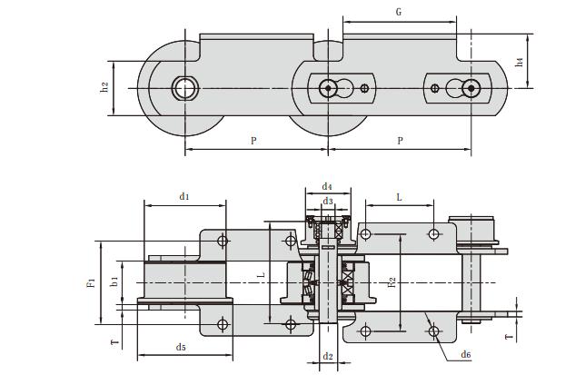 鏈條型號 P L G F1 F2 h4 h2 d6 T