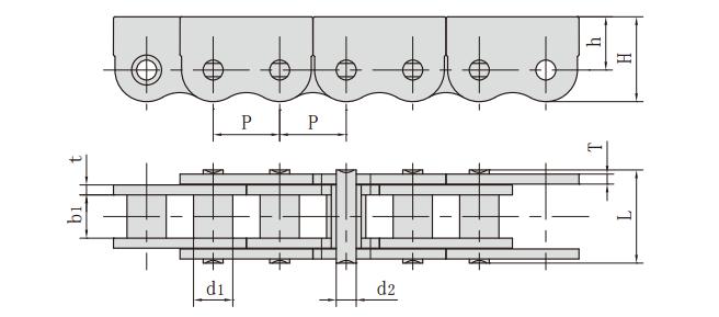 鏈條型號 節距 滾子直徑 內節內寬 銷軸直徑 銷軸長度 鏈板尺寸 抗拉強度 每米長重
