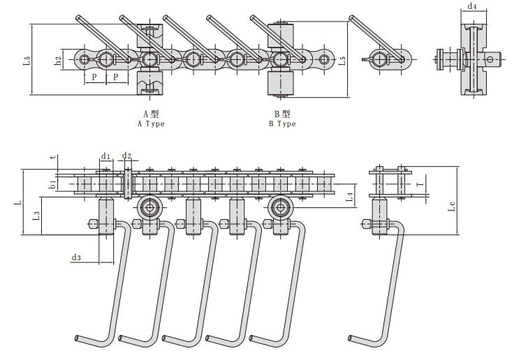 鏈號 節距 滾子直徑 內節內寬 銷軸直徑 銷軸長度 鏈板尺寸 附件尺寸 抗拉強度 類型