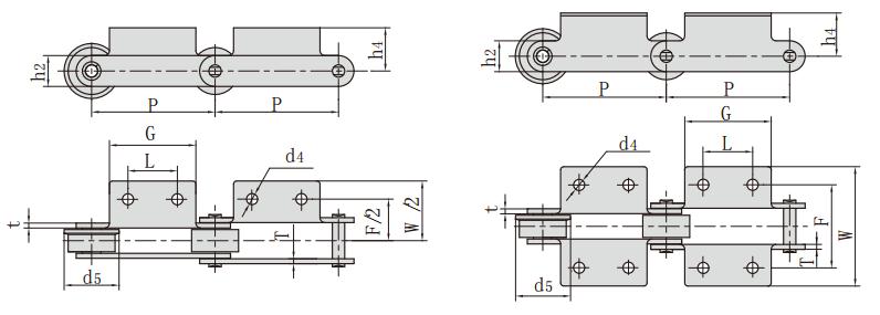 鏈條型號 P L G F W h4 h2 d4 t/T d5