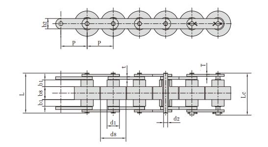 鏈號 鏈號 節(jié)距 滾子尺寸 銷軸直徑 銷軸長度 鏈板尺寸 每米長重