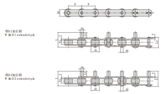 P41.3F18-D1F1_帶加長銷輸送鏈 輸送鏈條