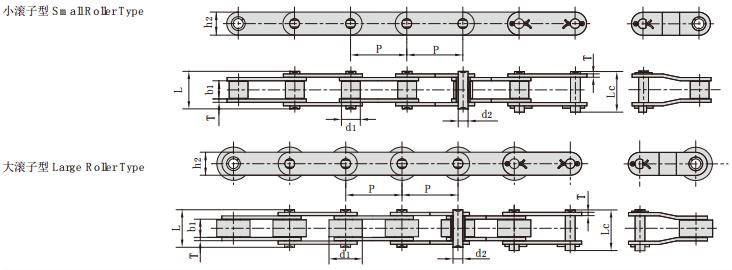 鏈條型號 P b1 d2 d3 L Lc